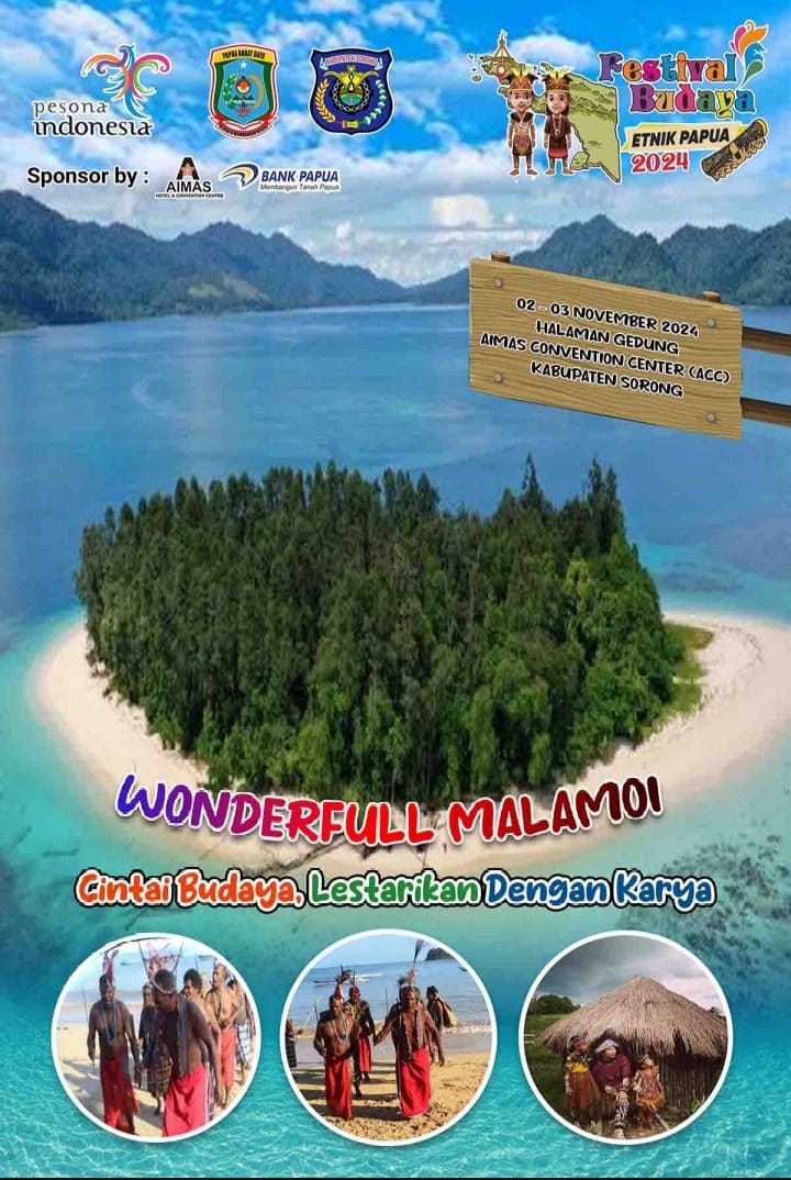 Festival budaya etnik diadakan pada tanggal 2 - 3 November 2024 di Halaman Gedung Aimas Convention Center Kabupaten Sorong.